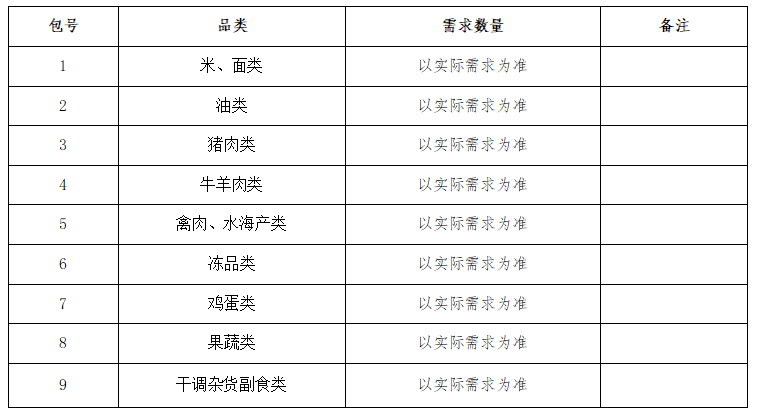 食材采購(gòu)項(xiàng)目公告
